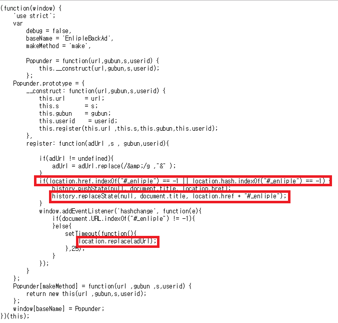 - 해당 사이트에 접근해서 url에 #_enplie라는 hash가 없으면, url 주소의 끝에 #_enplie를 붙여 주고
