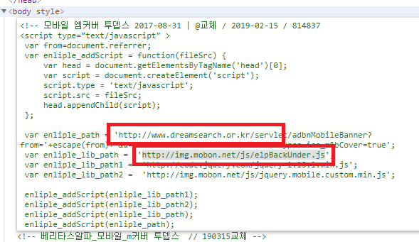 - mobon.net에서 사용되는 javascript는 아래와 같다.