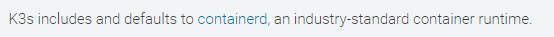 k3s에서는 containerd를 default container runtime으로 사용한다.