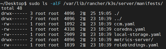 - 여기에 Traefik2.x 관련 yaml 파일들을 두면, k3s가 디렉토리를 감시하다가 알아서 Traefik 2.x 를 설치해 줄 것이다.