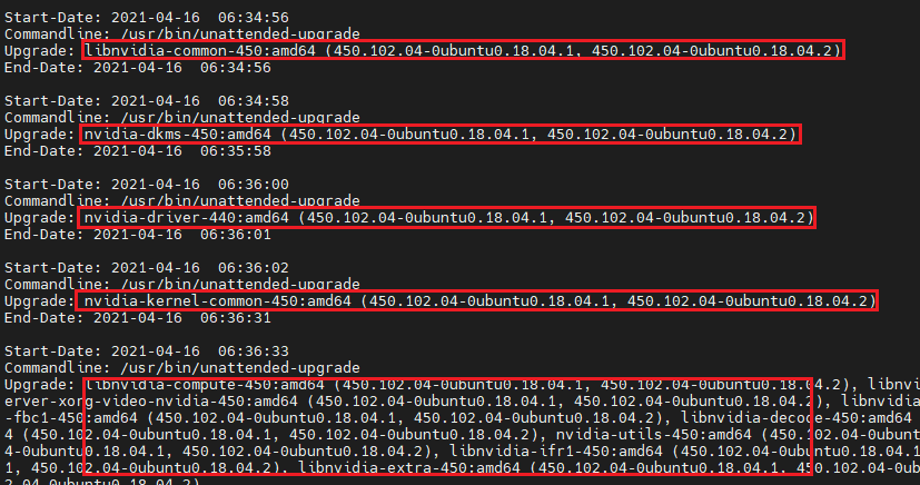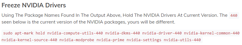 - 안정적인 서버에서 드라이버를 업데이트하면, 기존에 동작하던것들이 동작을 안 할 수 있기 때문에, 업데이트를 막아 주는것이 좋다.
