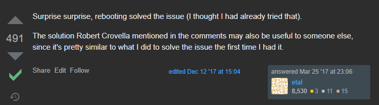 - 약 1년전부터 가끔 발생한 문제였는데, 이것저것 찾아 보았지만, 다들 재부팅하면 해결 될 거라는 이야기만...