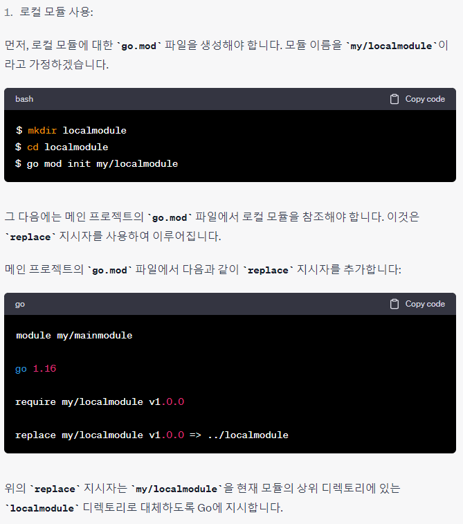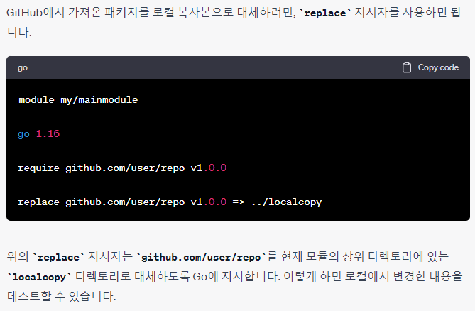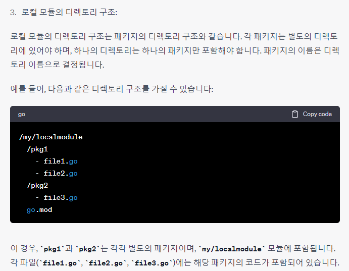 모듈, 패키지 부분은 당연히 책에서는 설명 되어 있으나, 나는 여러번 읽었으나 잘 이해하기가 어려웠다. 특히 이전에 사용하던 GOPATH 와 모듈의 도입, 그리고 github에 있는 모듈을 로컬로 연결해 주기 위해서 이런저런것을 한다는것 자체가 잘 이해가 안 됐다. 머리가 말랑말랑하지 못한가 보다. ㅎ.