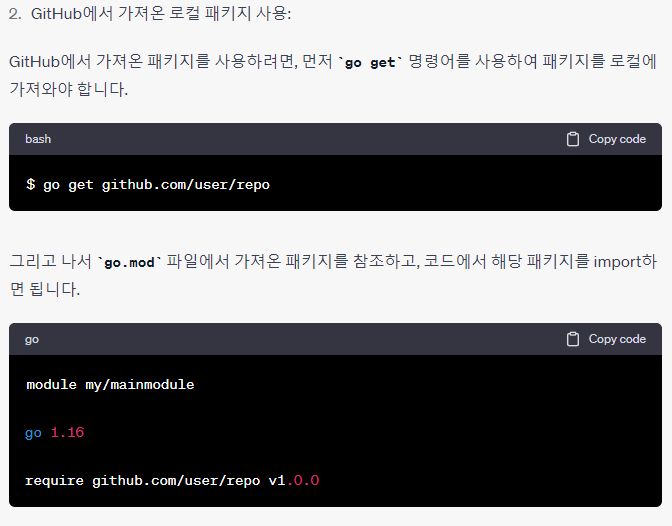 - go get github.com/yourusername/yourproject@v1.2, @latest 따위로 모듈을 다운로드 받음.