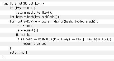 물론, get을 수행할때도 hashCode 값 이외에, 실제로 key의 equals가 동일한지 보고 반환하도록 되어 있습니다.