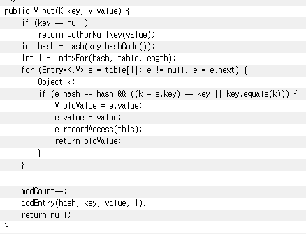 더 정확히 HashMap의 구현을 설명드리면 key의 hashCode뿐만 아니라, 기존에 존재하던 key들의 equals()까지 검사해서, 그것까지도 동일하다면 덮어쓰게 됩니다. 그러므로 위 예제에서는 equals() 까지 동일하므로, 기존의 "철수"정보를 반환하고, 새 "철수" 정보를 넣게 됩니다.