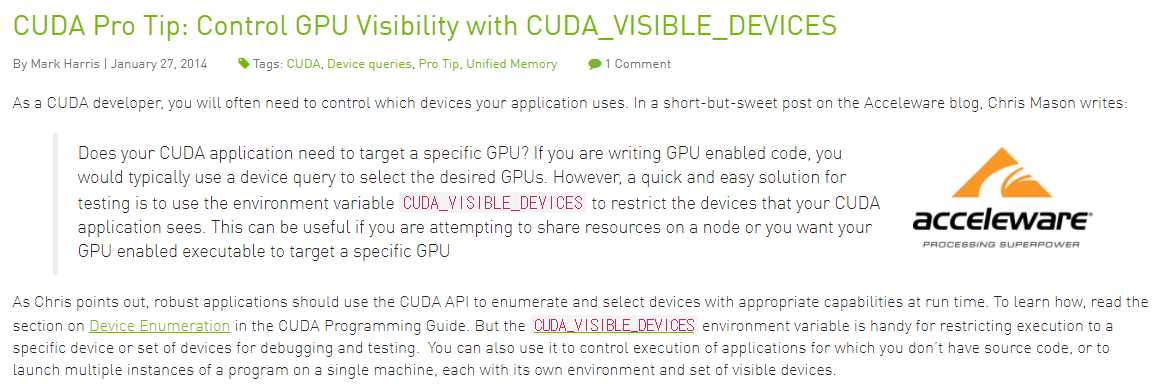 ( 관련 링크 : https://developer.nvidia.com/blog/cuda-pro-tip-control-gpu-visibility-cuda_visible_devices/ )
