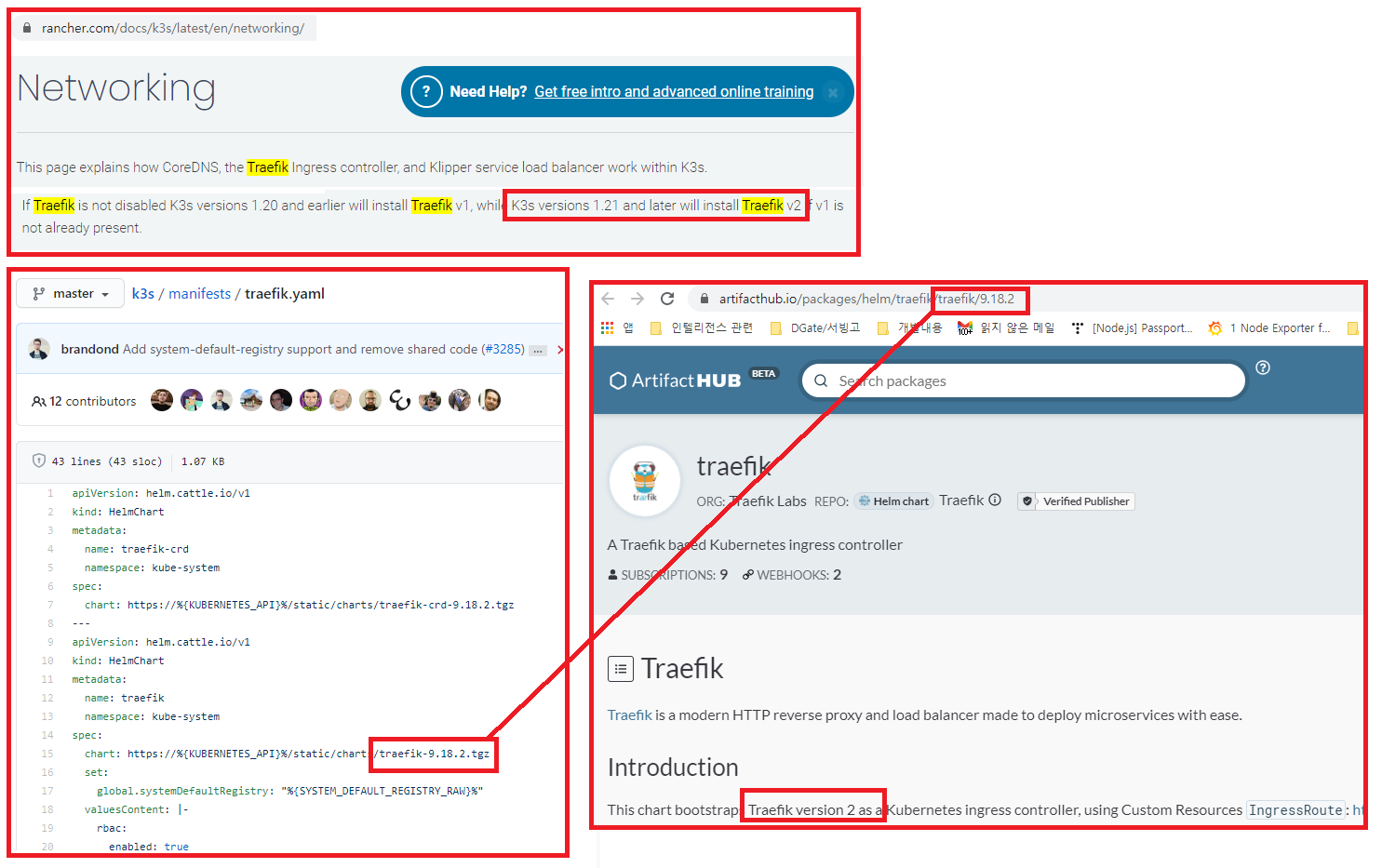 - 문제는 k3s에서 자동으로 설치해 주는 IngressController가 Traefik 1.81 버젼이라는것이다.