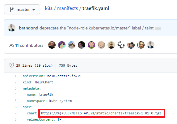 - 관련 링크 :https://github.com/k3s-io/k3s/blob/master/manifests/traefik.yaml